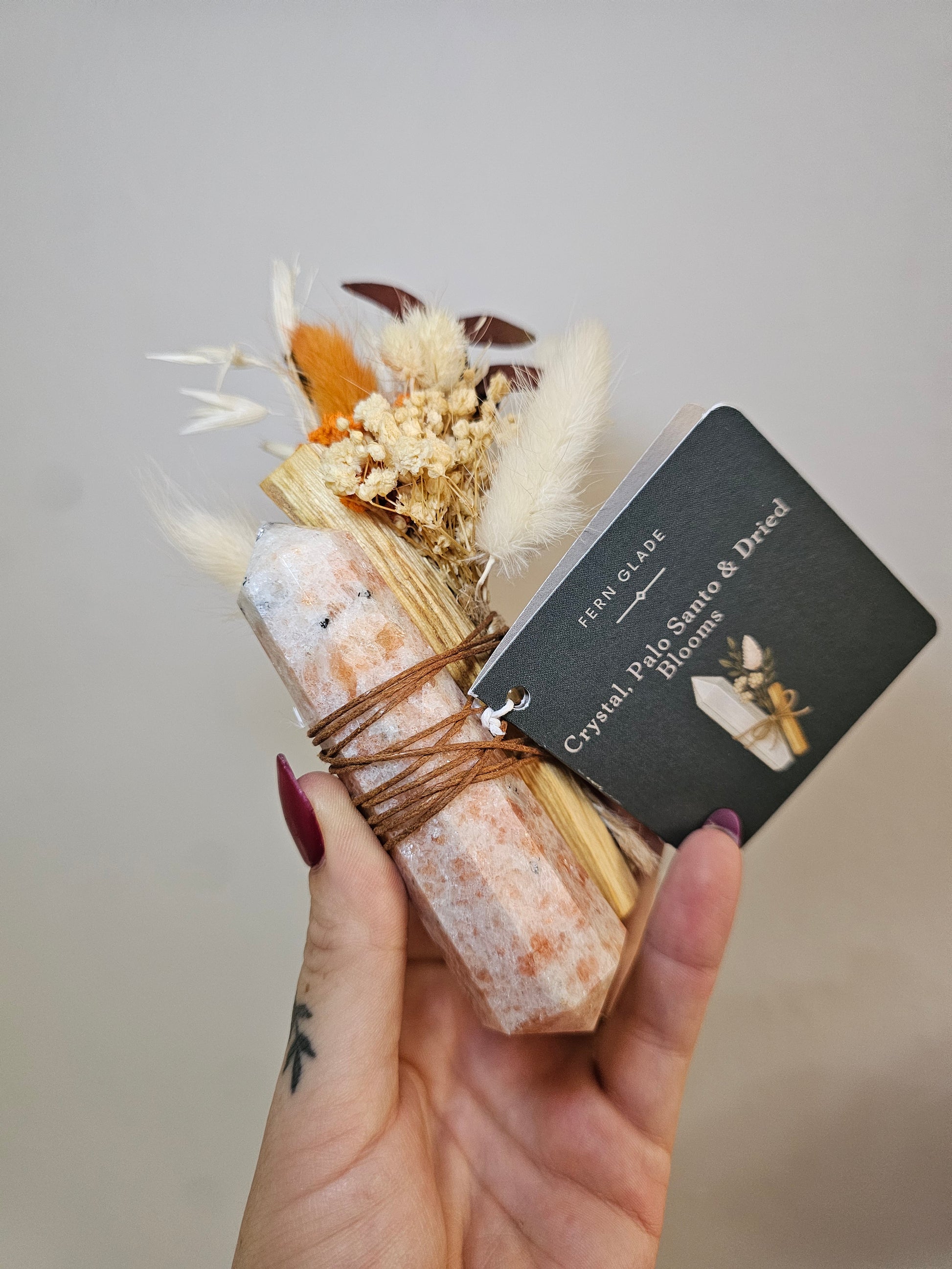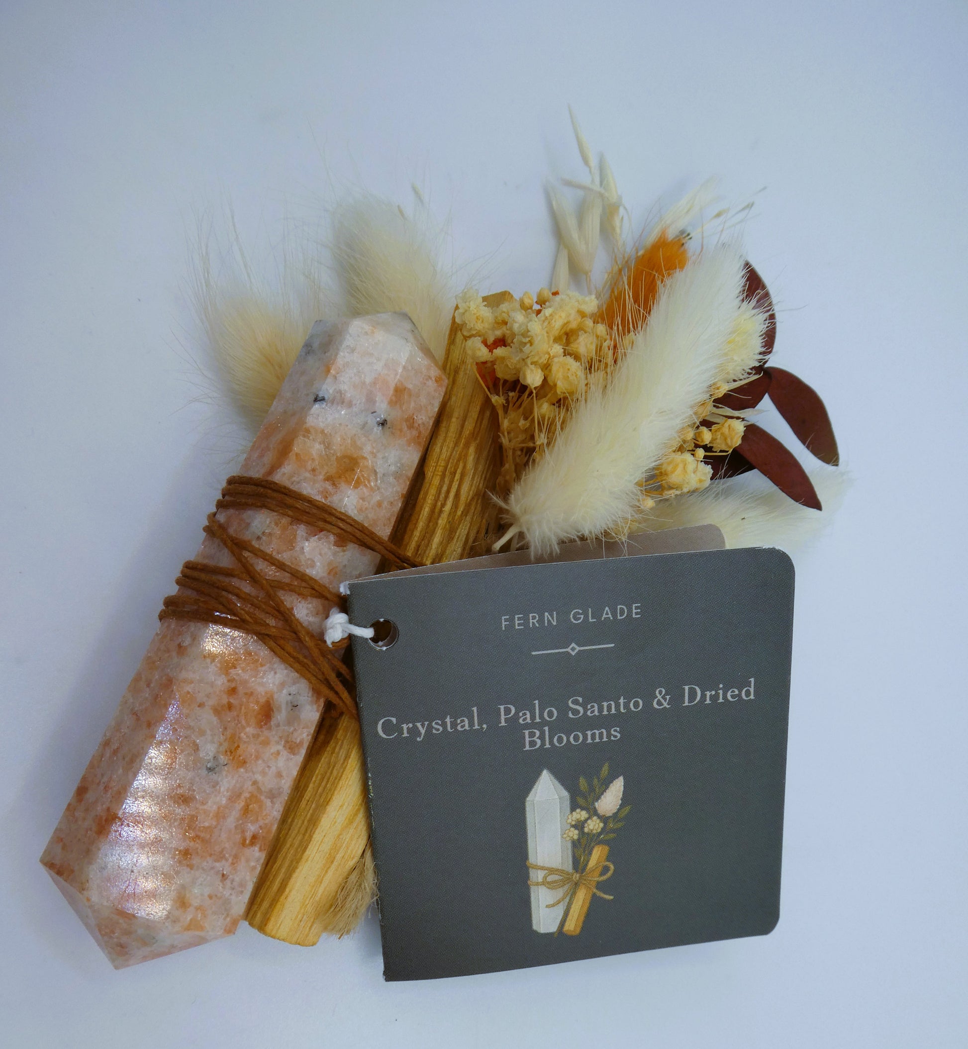 Radiate warmth, confidence and positive energy with this Sunstone Double Terminated Ritual Tower, intuitively styled with Palo Santo and dried florals for uplifting, soul-nourishing energy.